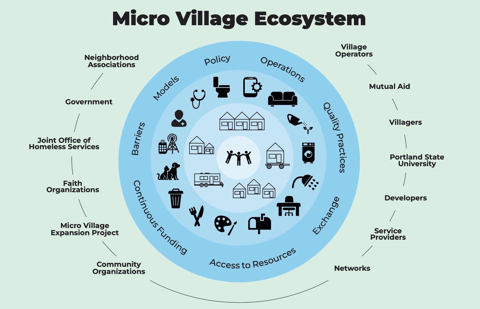 The Multnomah Village Evaluation Project (MVEP) is rooted in the voices and lived experiences of people directly impacted by houselessness. At its core, Multnomah Village Evaluation Project (MVEP) project gathered insights from 120 villagers and community members with lived or living experience of houselessness, alongside 34 village allies and 8 individuals with experience in shelters. Their perspectives shaped the foundation and direction of the work.