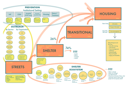 Multnomah County has previously engaged in SIM workshops, beginning in 2010, to strengthen communication between systems, expand diversion options, improve housing flexibility, and enhance crisis response services. In September 2019, the County conducted another SIM Mapping workshop, this time focusing on Intercepts 0 and 1 mobile crisis outreach, co-response, law enforcement, and emergency services.